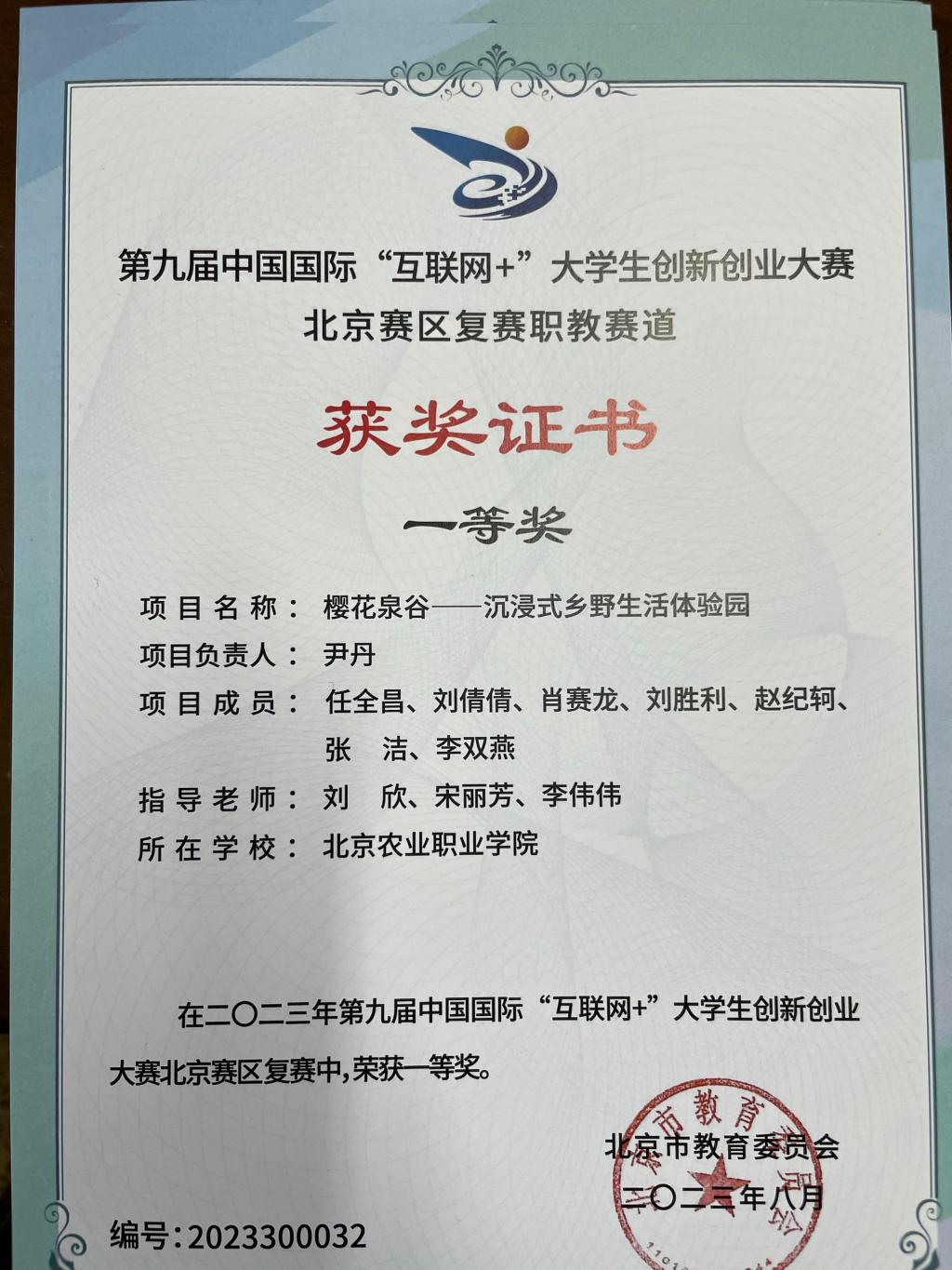 第九届中国国际“互联网+”大学生创新创业大赛北京赛区一等奖