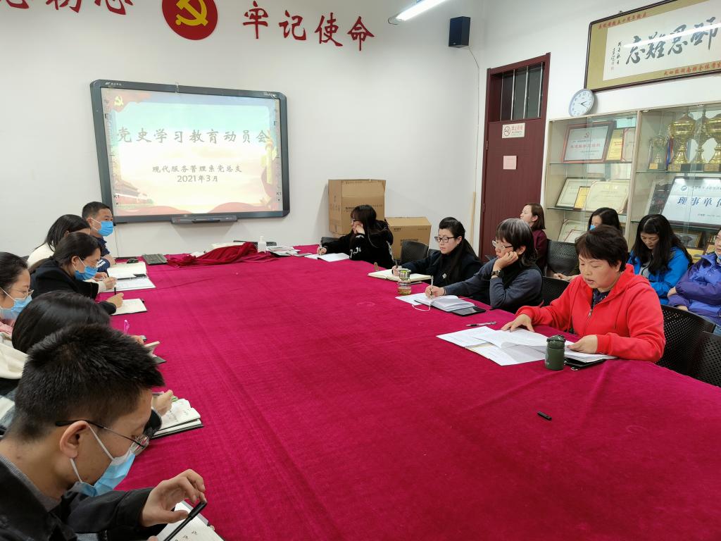 按照学院要求,现代服务管理系党总支于3月26日在系资料室召开党史学习教育动员会,系党总支书记陈丽清以及全系党员参加了会议。