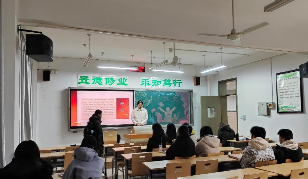 辅导员丁会娟老师对学生们讲到,我们纪念“一二·九”运动,就是要铭记历史、缅怀先烈,更要传承和发扬他们那种不屈不挠、勇于担当的精神,并提出了学生们要坚定理想信念,树立远大志向;要勤奋学习,提升自我;要勇于实践,敢于担当。真正理解和担起时代赋予我们的责任和使命。