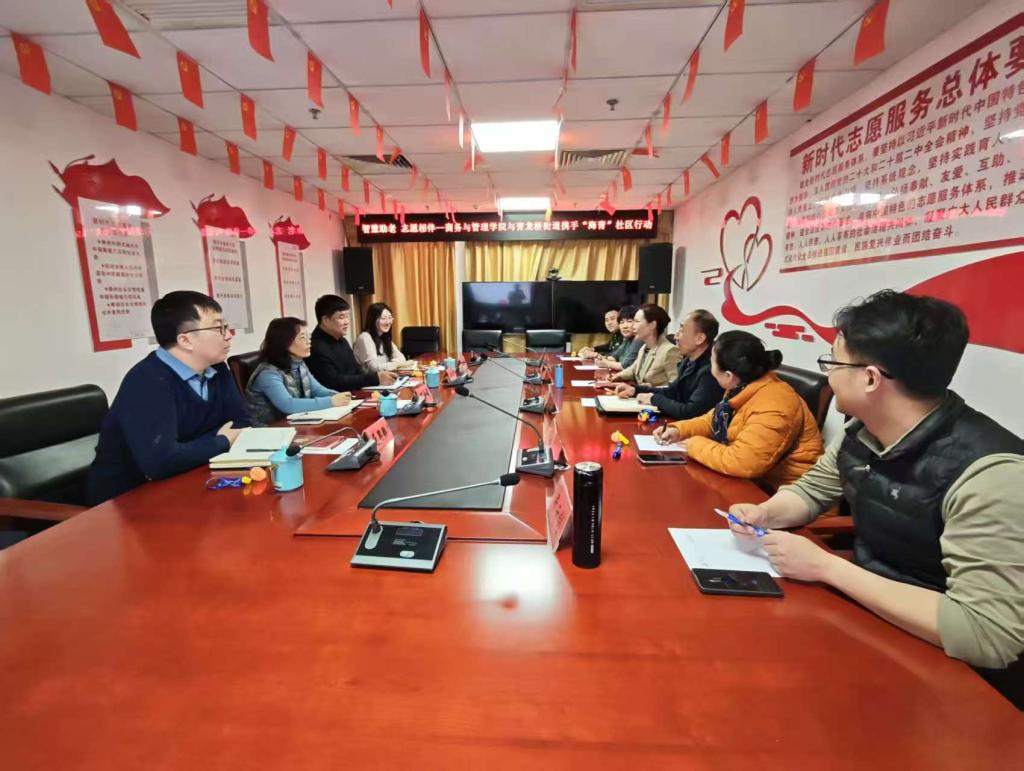 3月12日下午,商务与管理学院党总支副书记徐浩带队,来到青龙桥街道志愿服务促进中心参观学习,同时就如何协作开展"海青"社区助老行动进行洽谈。学院一行4人得到了中心主任王春红等街道负责人员的热情接待。