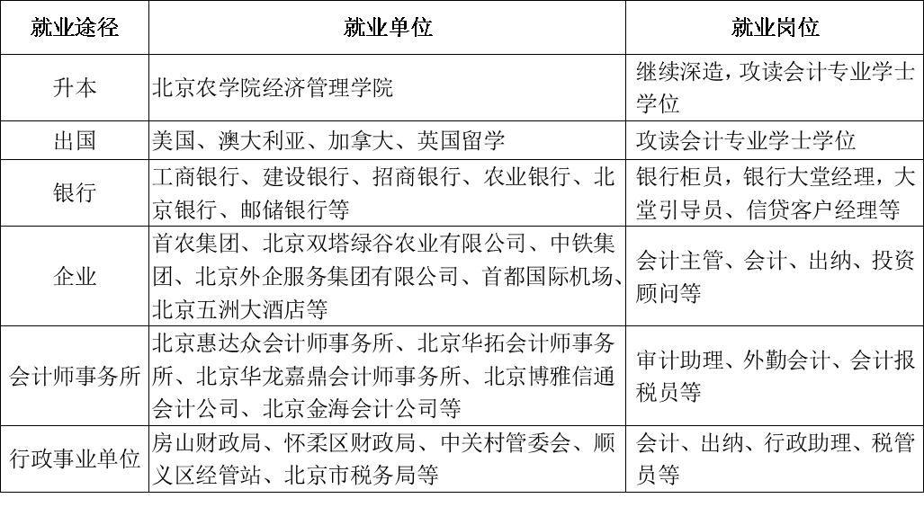 面向大数据背景下的财务工作岗位群,培养从事财务信息系统应用与管理、会计核算和管理、业财一体化管理、数字税务管理、企业内部审计、会计师事务所审计助理、财务大数据采集、数据分析、数据可视化等工作的高素质技术技能人才。
