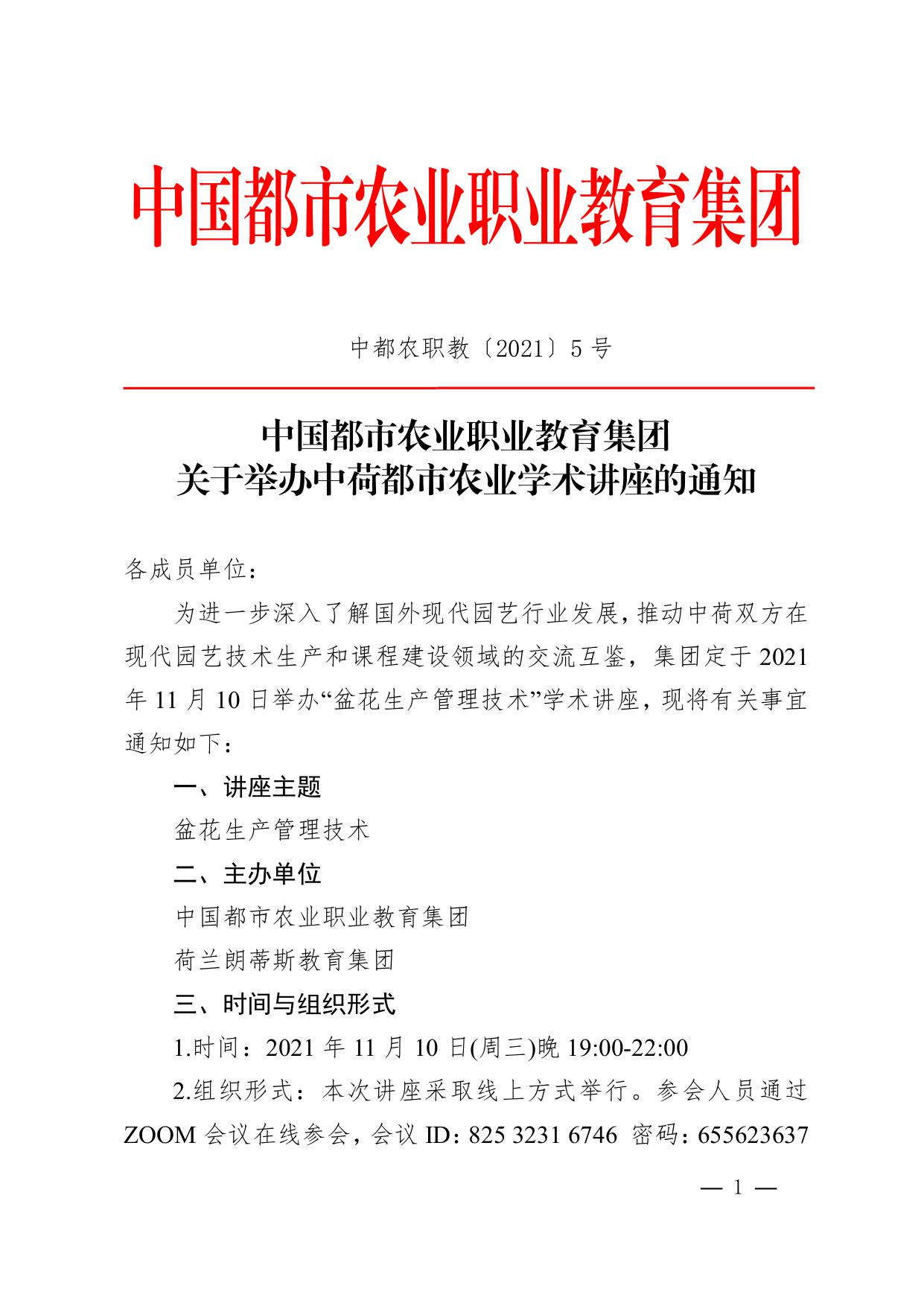 关于举办中荷都市农业学术讲座的通知