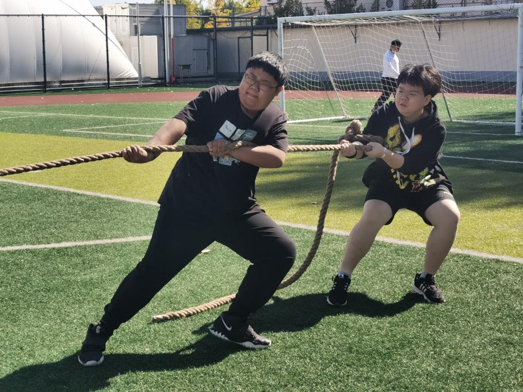 通过扣人心弦的拔河比赛中,同学们懂得了,做什么事都要齐心协力,团结一致,才能取得胜利!