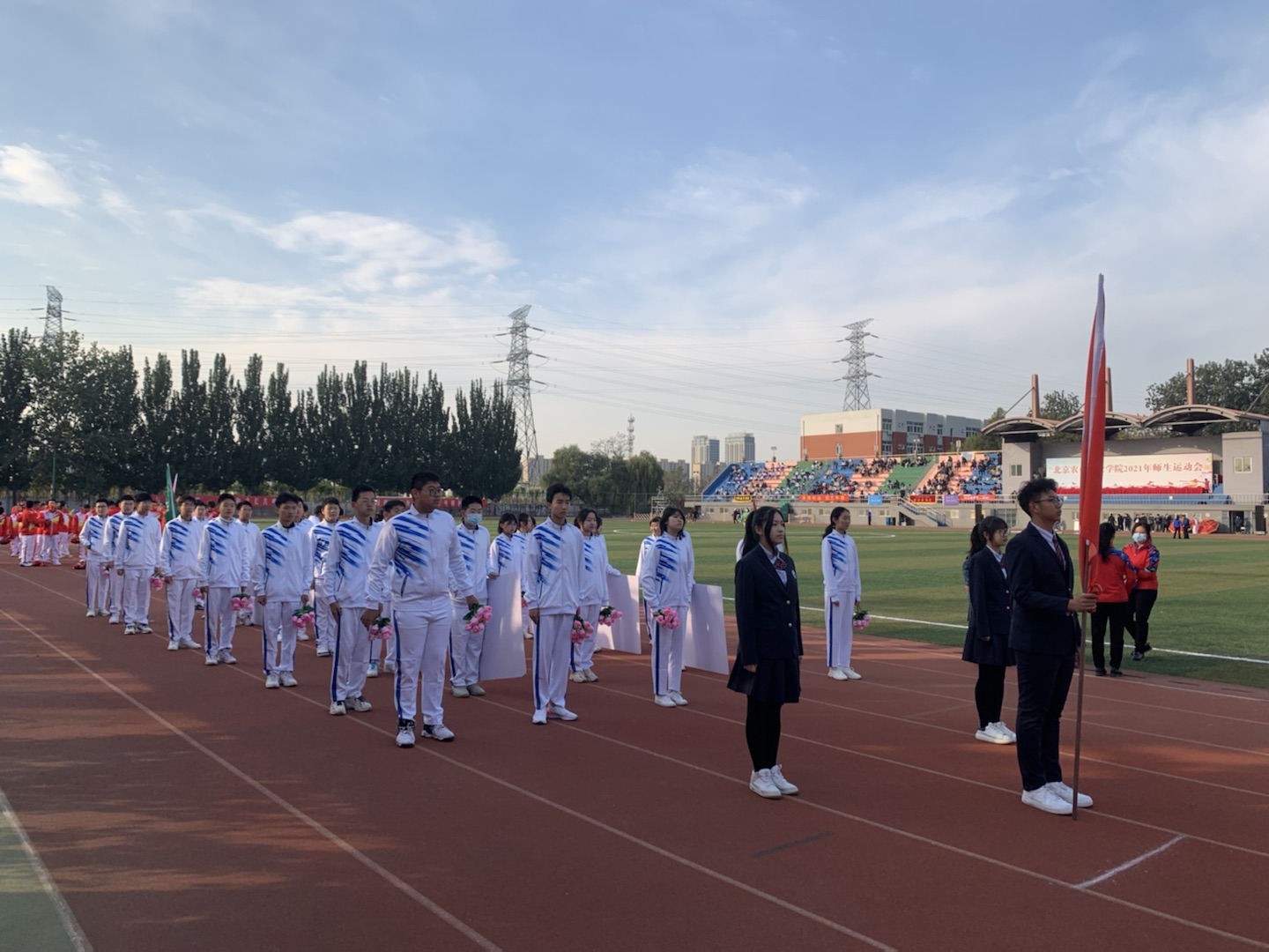 2021年10月20日,北苑校区贯通学生共15个班级,参加校第十七届田径运动会,同学们在开幕式上向院领导展示了精心准备的节目,并积极参加各竞技项目的比赛,取得优异成绩。