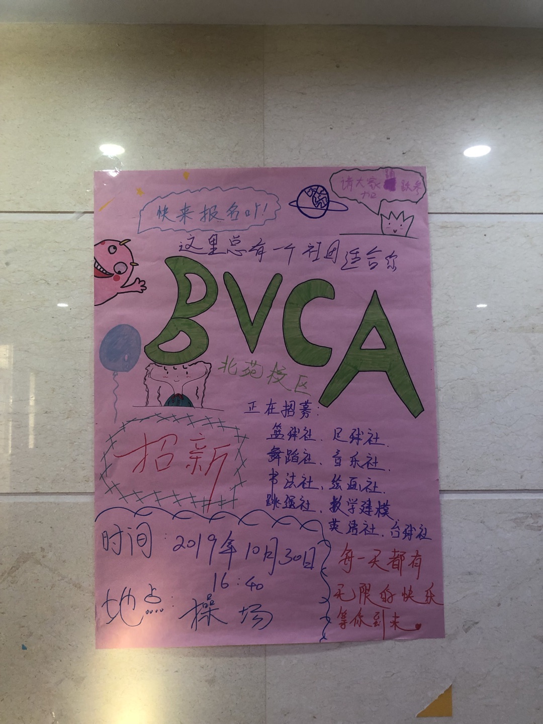 新学期best365学生社团开展丰富多彩的活动。由于各社团本学期纳新人数较多,参与社团学生总人数超三百人,为了进一步加强校园文化建设,使学生社团安全有序地开展积极向上、有益身心的活动,促进学生在德、智、体、美、劳各方面得到全面的发展,让学生的校园生活更加多姿多彩,北苑校区积极开展以提高学生综合素质、丰富学生课余生活为目的的社团活动范围包含英语、数学、艺术、体育等领域。