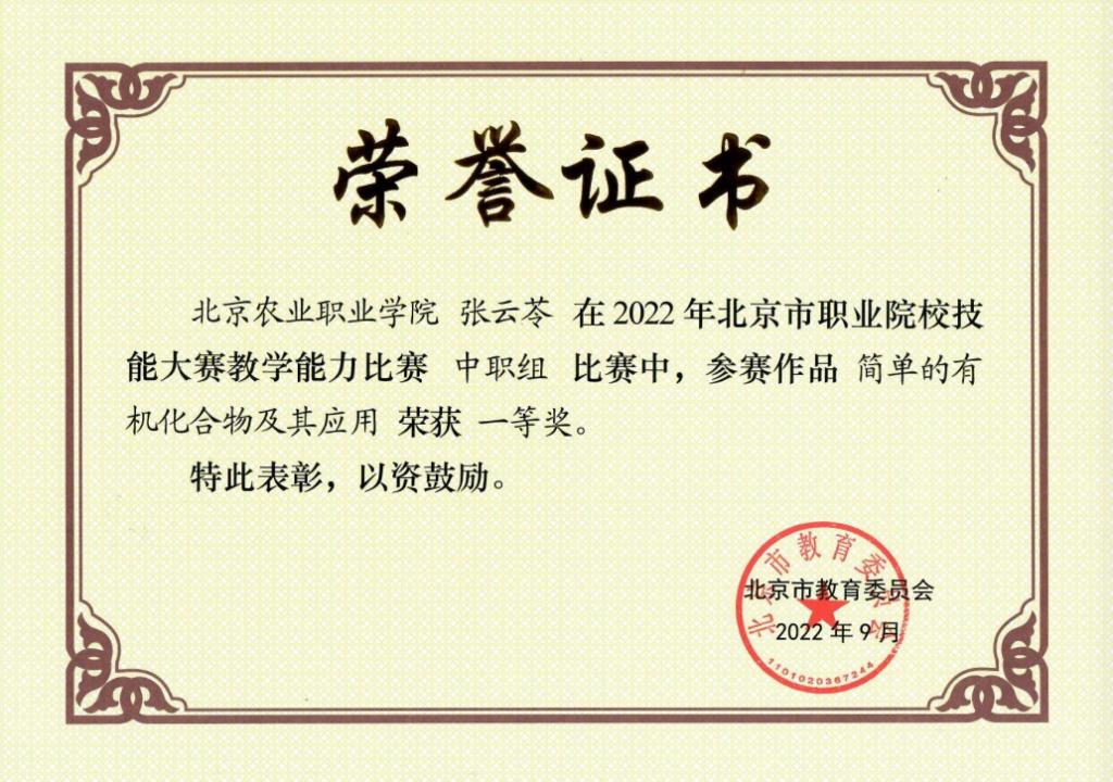 张云苓获北京市职业院校技能...
