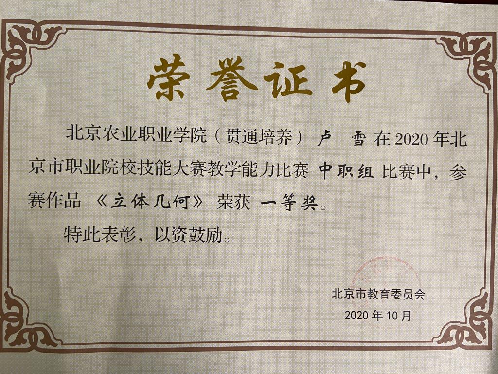 杨秀获北京市职业院校技能大...