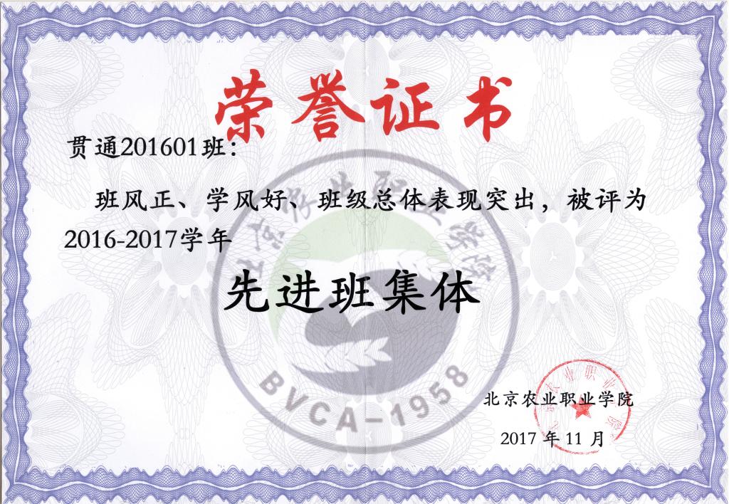 2016-1017先进班集体(王东兴...