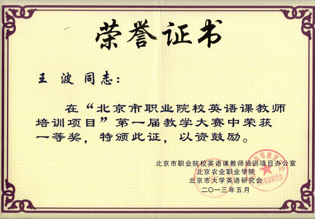 北京市英语培训教学大赛证书...