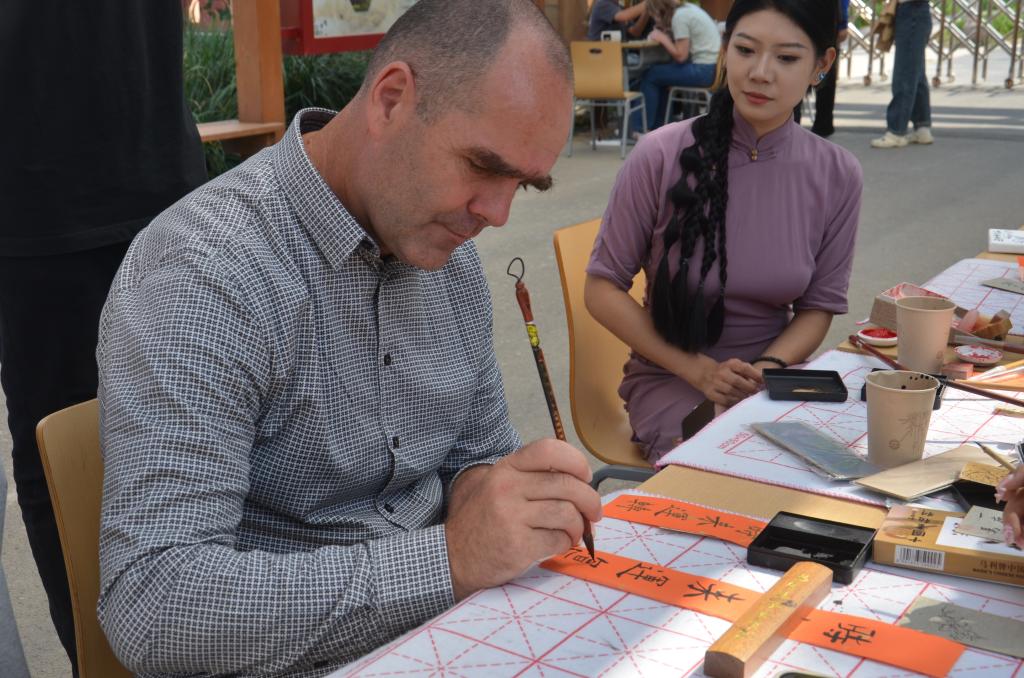 荷兰师生来best365参加文化交流活动——书法