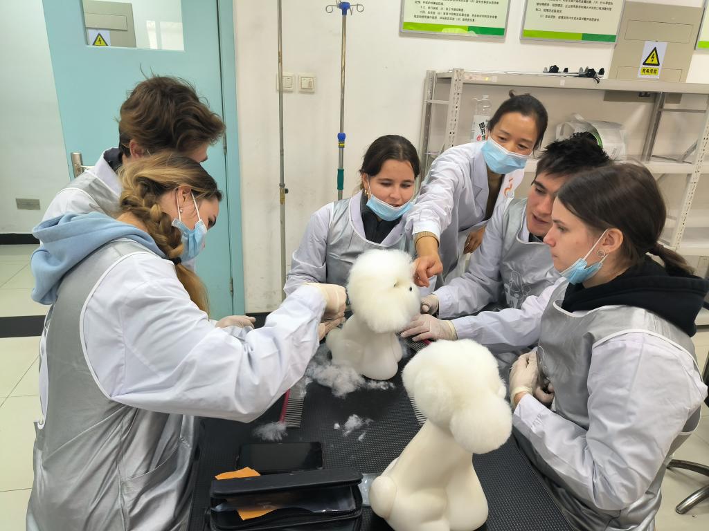俄罗斯师生学习宠物美容技术
