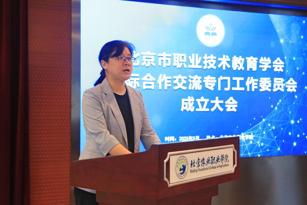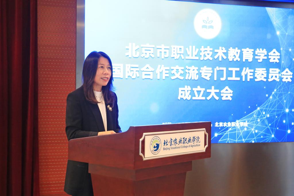 李师在讲话中强调,国际专委会的成立,是北京市职业技术教育学会发展壮大的里程碑,也是市教委落实《北京市贯彻教育强国建设规划纲要实施方案》又一新的举措,是北京职业教育国际化进程中的一件大事。希望专委会在北京市职业技术教育学会领导下,聚力致远,成为推动北京职业教育与国际接轨的“桥梁”和“引擎”。
