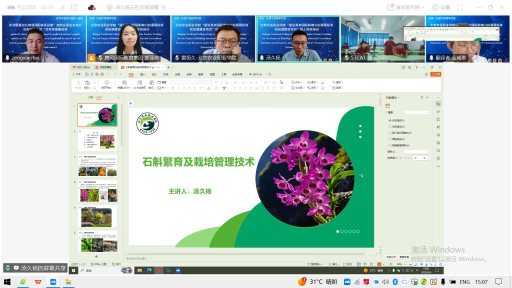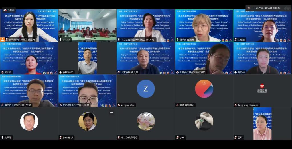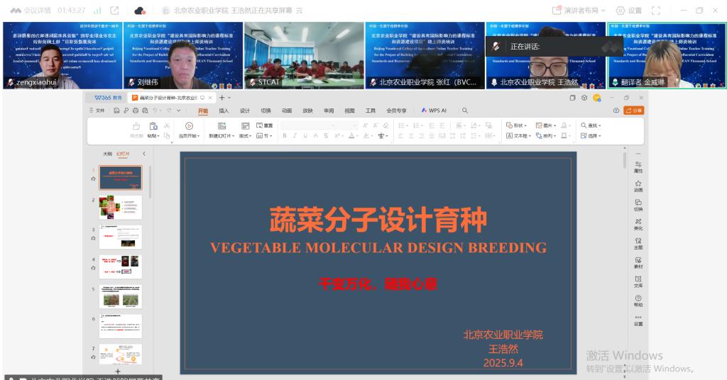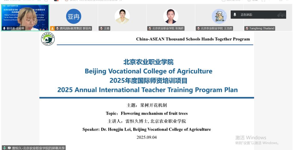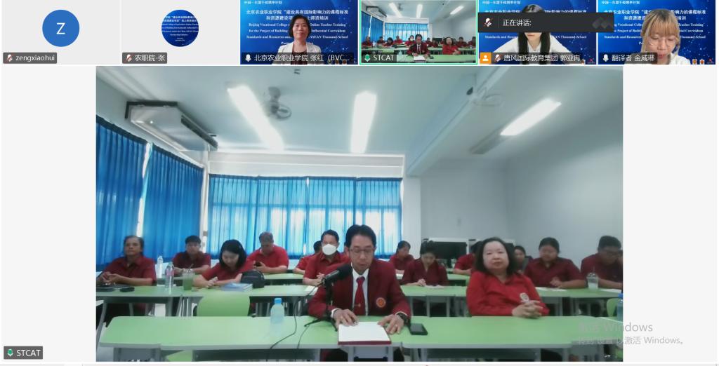 9月4日,学校成功举办“中国—东盟千校携手计划”项目建设具有国际影响力的课程标准和资源建设项目—《园艺生产原理》课程线上师资培训。学校党委常委、副校长谷天刚出席培训开幕式,学校党委常委、副校长张晓辉,素可泰农业技术学院副校长纳鲁查·林福西查罗分别致辞,学校国际合作与交流处、园艺园林学院、动物科技学院及泰国素可泰农业技术学院、清迈农业技术学院教师共同参与。会议由国际合作与交流处处长张红主持。
