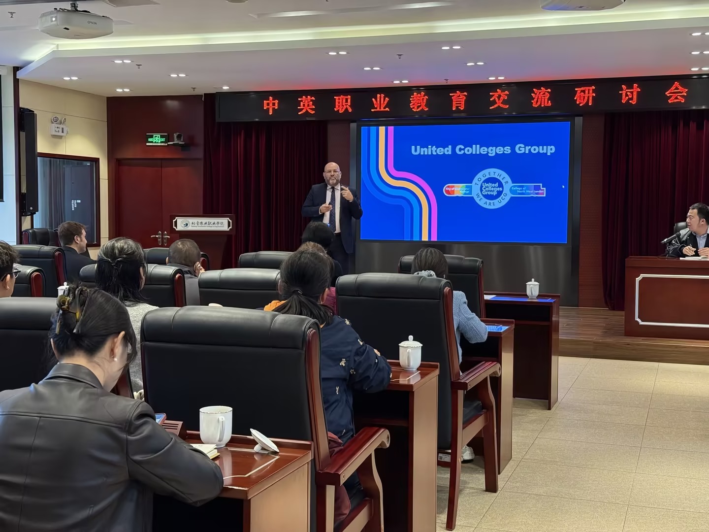 为深化职业教育国际交流,助力高素质技术技能人才培养,10月17日上午,第二届校园文化周中英职业教育交流研讨会在best365长阳校区行政楼顺利举行。学校二级学院主管教学院长、系主任、专业主任、外事专员、国际合作与交流处、学生国际交流服务协会全体参会。英国联合学院集团首席执行官兼集团总校长斯蒂芬·戴维斯应邀作“英国职业教育发展历程和创新”专题讲座,双方围绕专业建设与师生发展等议题展开深入交流,并在多个方面达成合作共识。学校党委副书记周洪生在研讨会之前会见了斯蒂芬·戴维斯一行。
