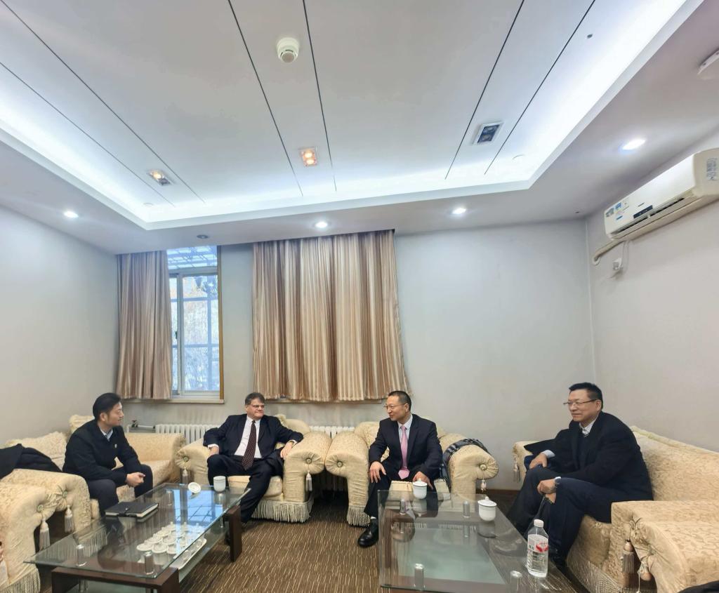 吉尔吉斯共和国教育部科学与方法中心主任卡拉巴耶夫、第43职业技术学校校长扎纳别克带队来访,谷天刚出席座谈会。双方重点就农业技术培训合作、师生互访交流等议题深入沟通,会后代表团参观了学校校史馆、绿色科技示范园及大学生创新创业园。