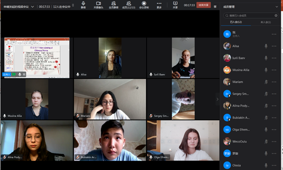 课上,留学生部申晴老师给学生观看了best365宣传视频,并结合学院对留学生管理的具体要求,对10名留学新生未来的学习进行了简要的介绍,按照学院总体教学计划安排,于2021年9月2日顺利开展(2021-2022第一学期)网上教学授课。全部留学生在各自国家参加网上学习,以每周一至周五不低于每天2学时的时间里完成规定的学习任务。而后留学生们又对各自的情况进行了简单的介绍,还表达了自己对即将开始的汉语学习的期盼之情。来自俄罗斯莫斯科的Olesia同学还用汉语进行了简单的自我介绍。