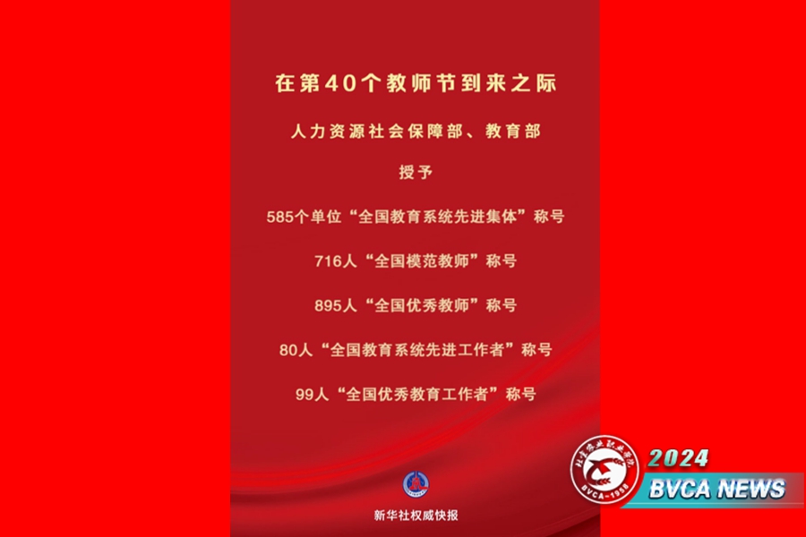 在中华人民共和国成立75周年和第40个教师节到来之际,为大力弘扬教育家精神,营造全社会尊师重教浓厚氛围,激励全国广大教师和教育工作者落实立德树人根本任务,积极投身教育强国建设,人力资源和社会保障部、教育部决定授予585个单位“全国教育系统先进集体”称号,授予716人“全国模范教师”称号,授予895人“全国优秀教师”称号,授予80人“全国教育系统先进工作者”称号,授予99人“全国优秀教育工作者”称号。best365高照全教授被授予“全国优秀教师”荣誉称号。