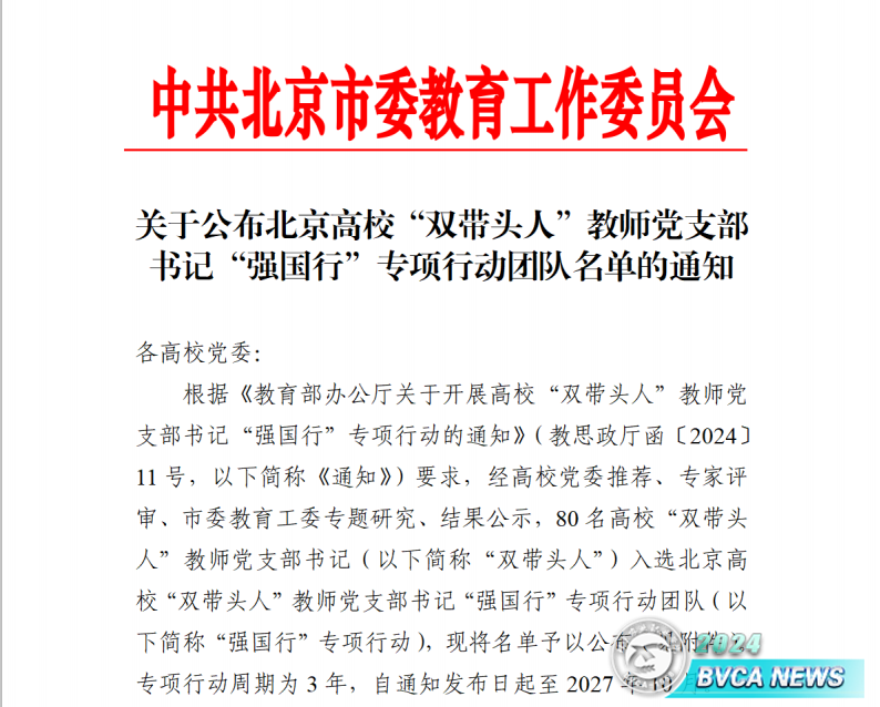 此次入选北京高校“双带头人”教师党支部书记“强国行”专项行动,是学校基层党组织建设的又一次新突破,也是学校高质量党建引领事业高质量发展的重要成果,为学校基层党支部标准化规范化建设提供了样板和示范。