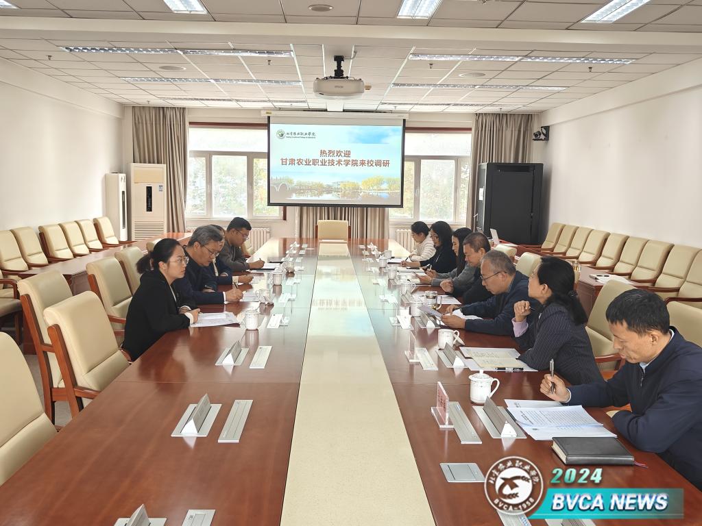 10月30日上午,甘肃农业职业技术学院党委书记薛仰全一行4人来校调研交流,学校党委书记周志成出席座谈会,党委副书记鲁雷主持座谈会并陪同调研参观。