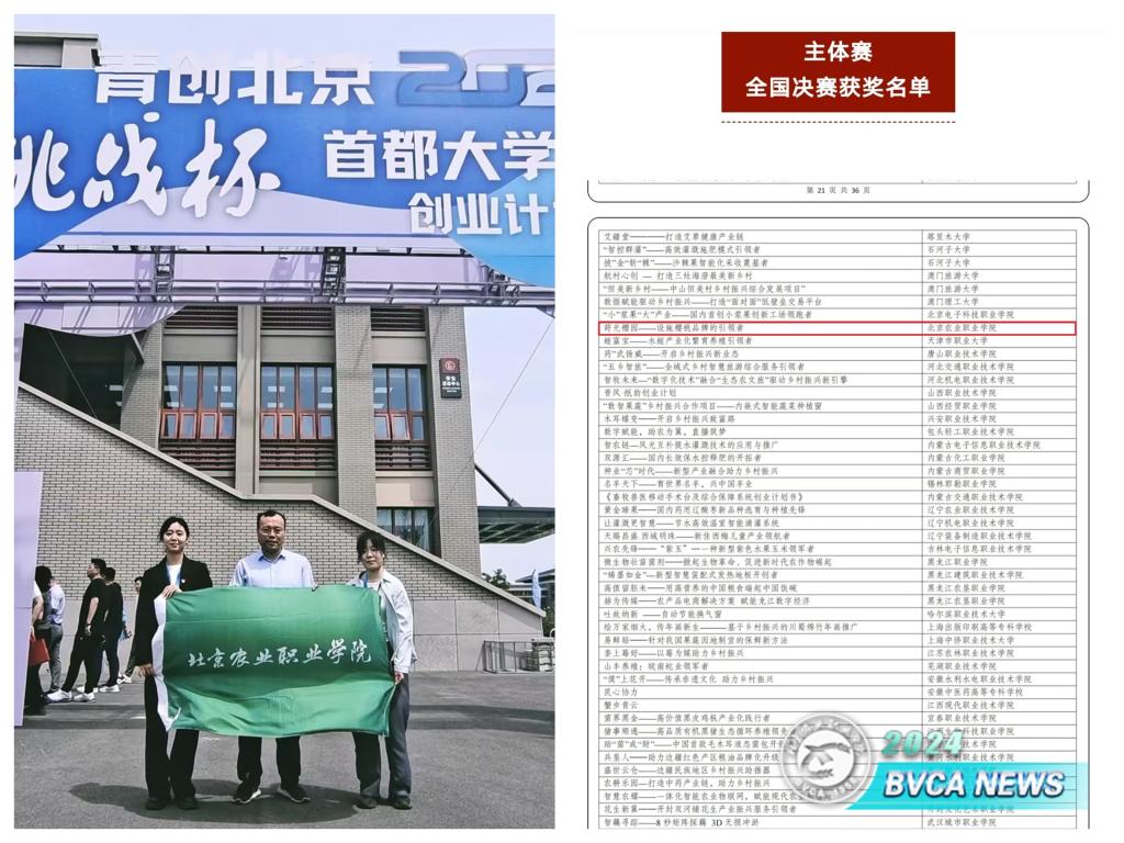 2024年“挑战杯”创业计划竞赛校赛自1月份启动,各二级学院高度重视、广泛动员,指导教师精心辅导,参赛团队热情高涨,全校共征集项目61个,400余名同学参与报名,150余名教师参与指导。在校赛、市赛、国赛备赛期间,学生工作部、团委邀请专家开展赛事解读讲座,逐轮逐件筛选参赛项目;对市赛参赛项目逐一开展PPT内容优化、路演答辩模拟辅导,参赛作品质量和水平不断提高。最终24个项目在市赛各赛道中获奖,其中金奖4项、银奖9项、铜奖11项,学校获得优胜杯。园艺园林学院推报的《莳光樱园——北京设施樱桃品牌的引领者》项目脱颖而出,顺利晋级国赛。