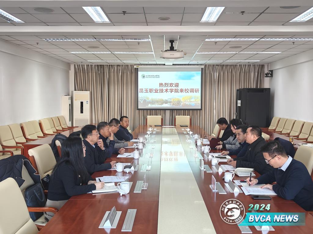 杨博对昆玉职业技术学院一行的到来表示热烈欢迎,并详细介绍了学校发展历程及办学特色。他表示,学校将积极落实市教委对口帮扶部署要求,进一步深化与昆玉职业技术学院的交流合作,加强两校教育资源共享,助力西部地区职业教育水平提升。