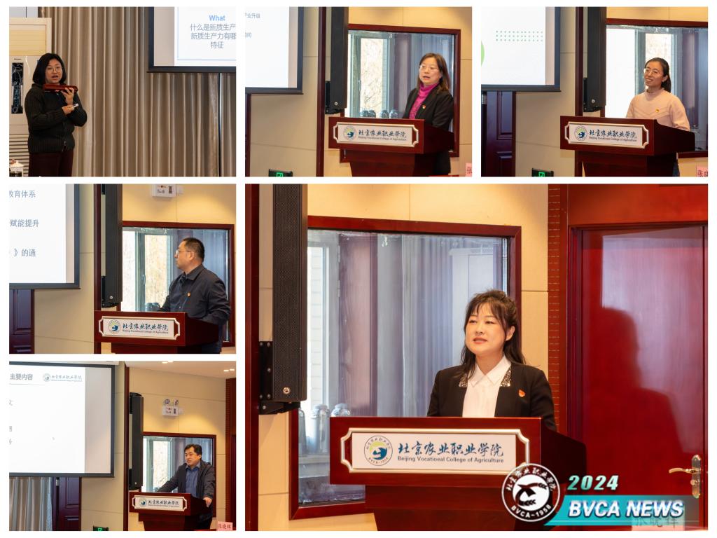 各小组分别汇报了《新质生产力驱动职业教育“三教”改革研究》《学校青年教师职业发展存在的问题及解决思路》《学校科研与服务情况调研及建议》《学校人才培养现状分析及高质量发展建议》《打造产教融合新引擎,激活人才培养新动力——学校实习实训条件调研及建议》五个课题的研究情况,展示了青年干部在产教融合、人才培养、师资建设等方面的深度思考与实证研究。