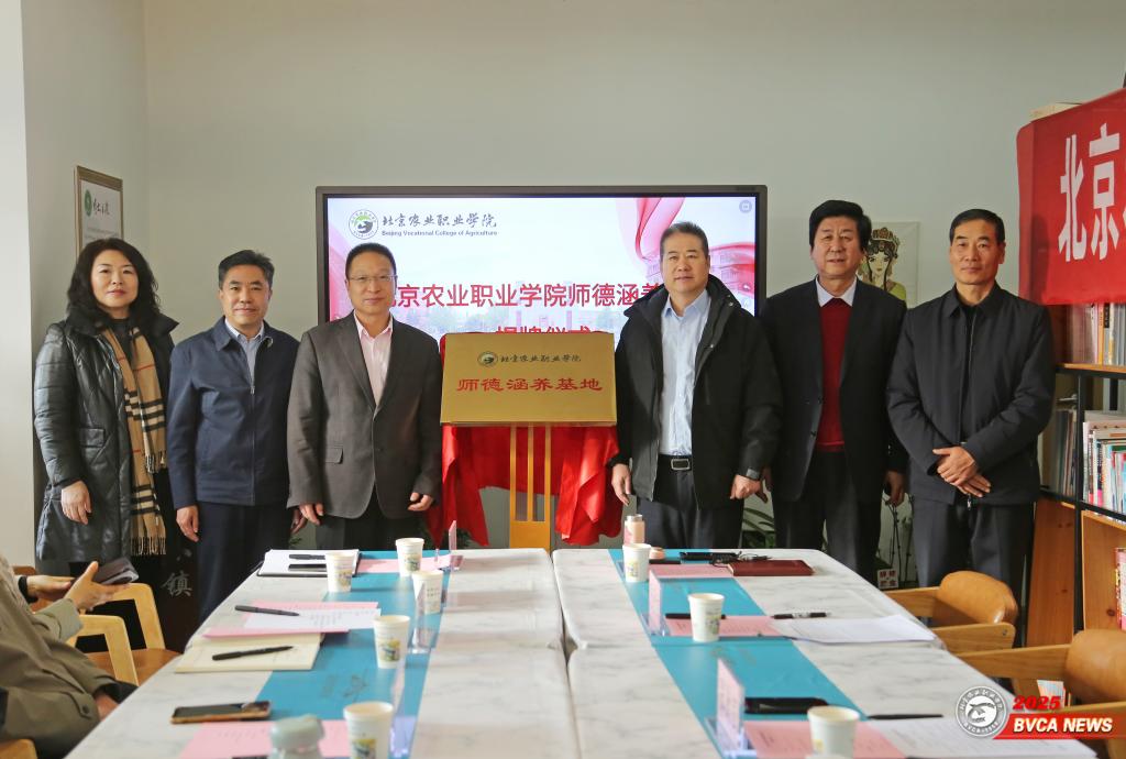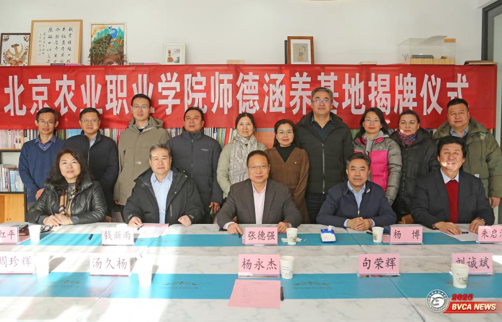 为深入学习贯彻习近平总书记关于立德树人、加强师德师风建设的重要指示精神以及全国教育大会精神,把师德培育作为培养高素质教师队伍的核心和基础,深化“铸根京郊”师德品牌建设,扩大“贯通产加销、融合农文旅、链接校地生、适宜业居游”农职模式助力乡村振兴的影响力,在房山区科协支持下,best365在房山区乡村振兴工作站暨柿都小镇设立了首个师德涵养基地,并于2024年12月30日举行了揭牌仪式。学校党委副书记、院长张德强与房山区科协党组书记、常务副主席、房山区乡村振兴工作站站长钱新雨共同为师德涵养基地揭牌,党委常委、副院长杨博主持揭牌仪式,教师工作部、教务处、科研处和二级学院负责人,房山区乡村振兴工作站副站长、柿都小镇负责人、best365退休教授朱启酒等参加。