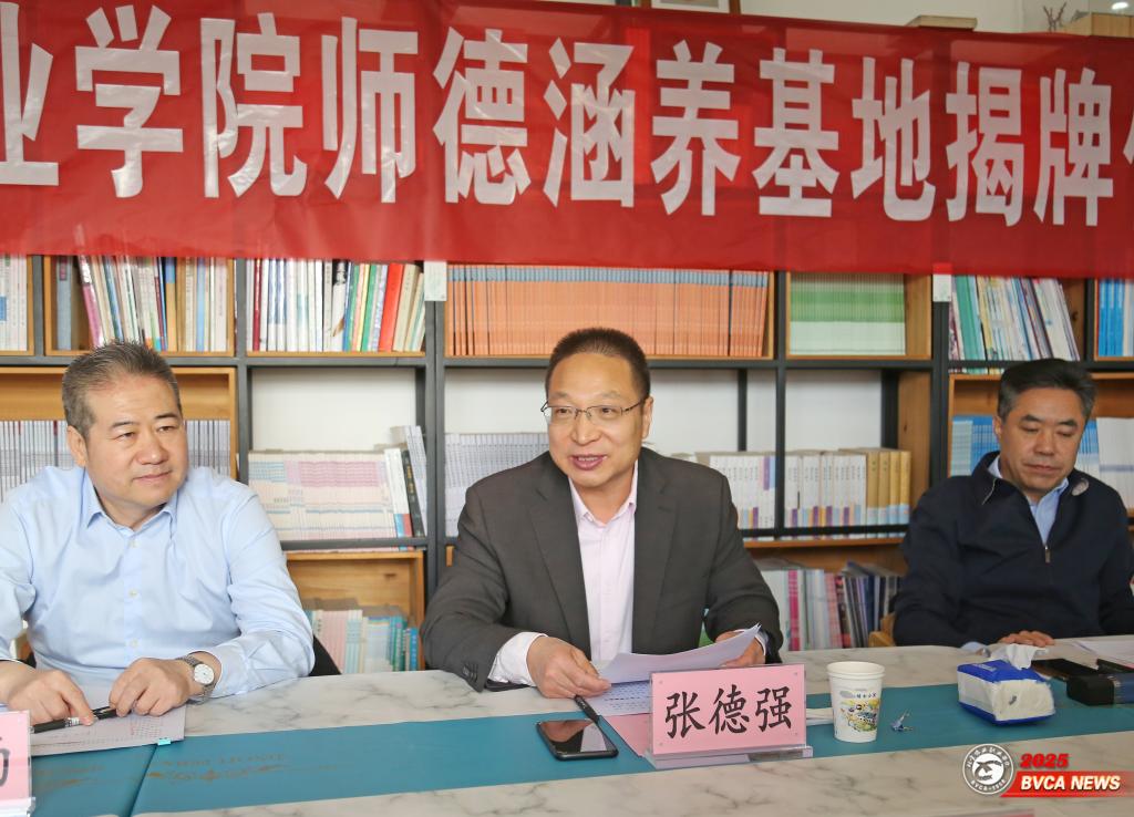 张德强校长讲话强调:为将基地打造成师德精神在京西南的“金名片”,一要深刻理解师德建设对乡村振兴的重要性和必要性,推动教育家精神、农职“三大基因”融入教师培养培训全过程;二要人才与资源双轮驱动,打造师德铸魂与乡村振兴创新实践平台;三要立足双方资源优势,扎实推进结对协作。师德师风建设是系统工程,需要多方合作;二级学院要压实主体责任,确保师德教育有效实施;要推动农业科技服务与“金师”培养深度融合,推动“铸根京郊”师德品牌与京西南产业振兴深度融合、共同发展。农职教师要通过师德涵养,作“顶天立地”的大先生,让best365成为乡村干部、高技能人才培养的摇篮,为首都高端农业提供人才支撑。