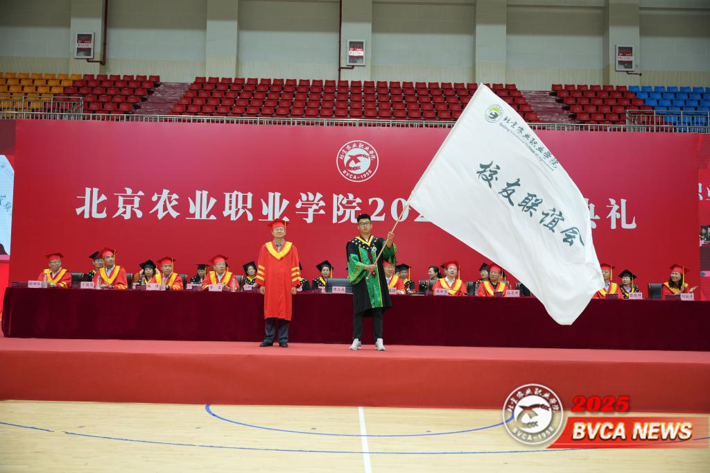 周志成代表学校接受毕业生赠礼,并向毕业生赠送校友旗,将传承母校精神的接力棒郑重交到2025届农职校友手中。主席台前排领导向毕业生赠送“农职护航伞”,表达母校永远为学生遮风挡雨、护航学生前行的永恒承诺。