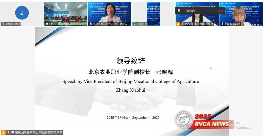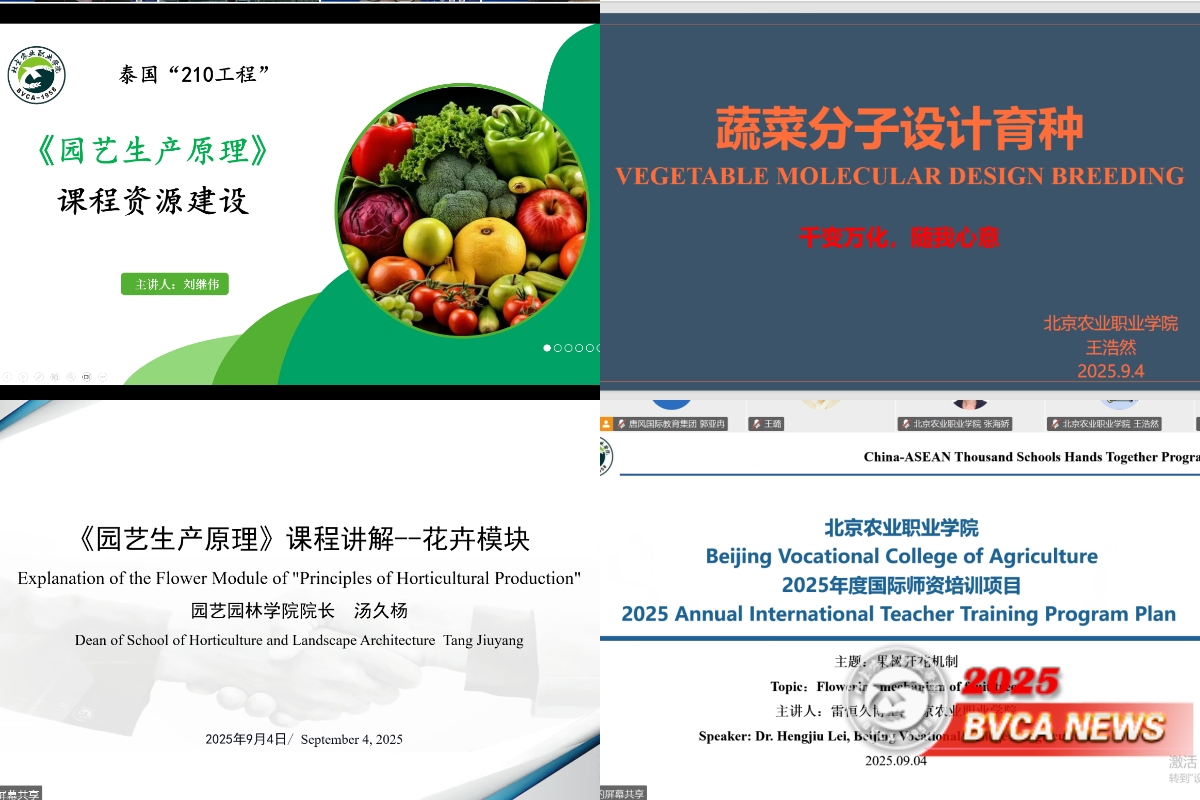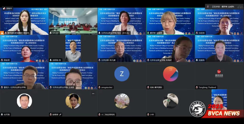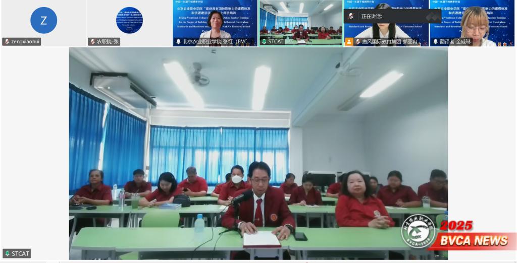 9月4日,学校成功举办“中国—东盟千校携手计划”建设具有国际影响力课程标准和资源建设项目课程标准线上师资培训。党委常委、副院长谷天刚出席开幕式,党委常委、副院长张晓辉与素可泰农业技术学院副校长纳鲁查·林福西查罗分别致辞,国际合作与交流处、园艺园林学院、动物科技学院,以及泰国素可泰农业技术学院、清迈农业技术学院教师共同参与,会议由国际合作与交流处处长张红主持。