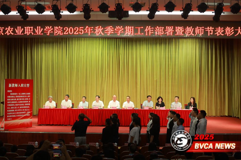 大会专门安排2025年新入职教师进行入职宣誓,在动物科技学院党总支副书记、副院长张凡建教授的领誓下,全体新教师举起右手庄严宣誓。铮铮誓言表达了忠诚党的教育事业、深耕职教沃土,为培养社会主义建设者和接班人而努力奋斗的坚强决心和昂扬斗志。