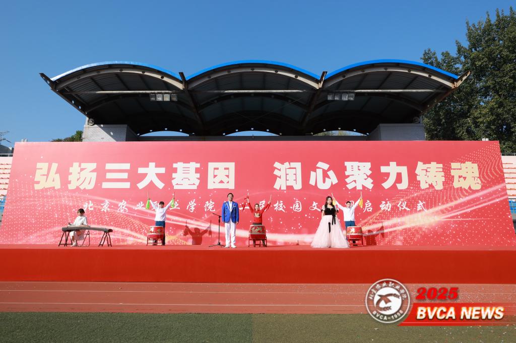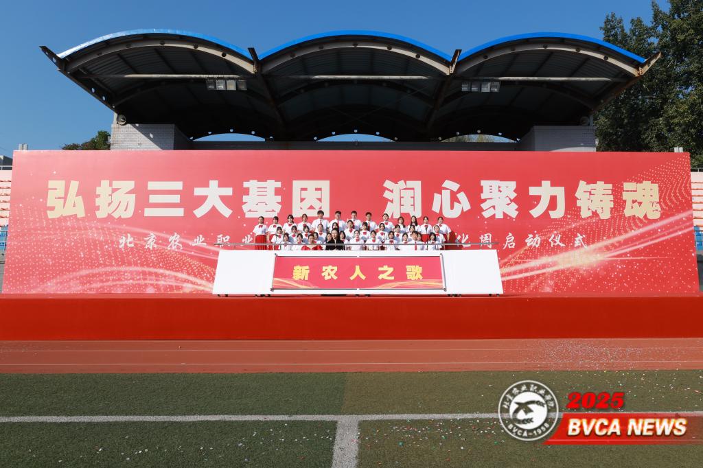 在庄重而热烈的氛围中,党委书记周志成,党委副书记、院长张德强,退休老领导、原党委书记崔砚青,优秀校友代表、首农北京市长阳农场有限公司党总支书记郭建波,新校歌词作者、退休教授赵庶吏和在校生代表共同为新校歌——《新农人之歌》揭幕,第二届校园文化周正式开幕。
