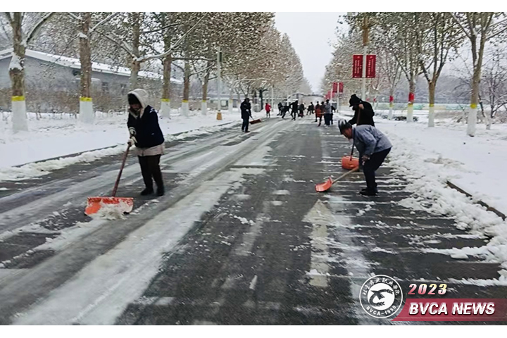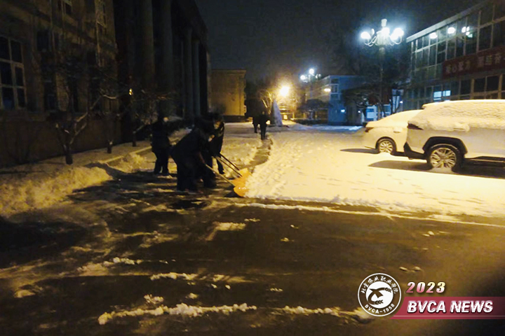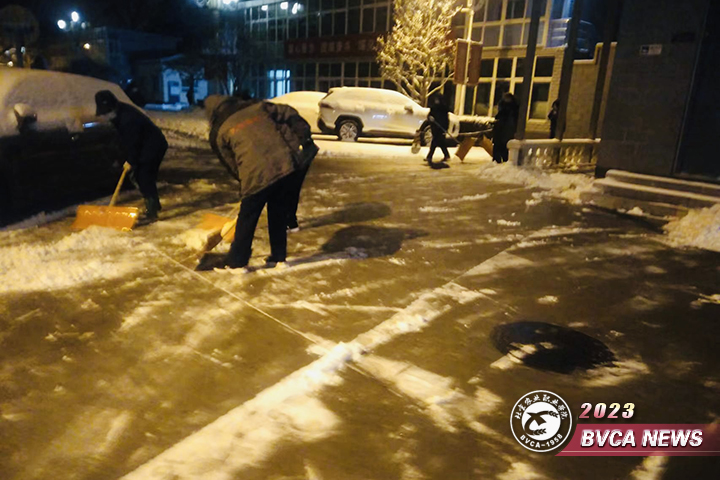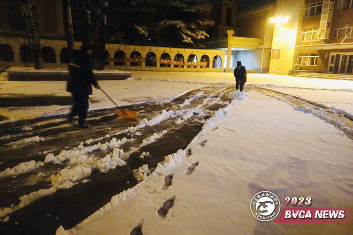 12月10日夜间,北京迎来入冬以来首场降雪,全市平均降雪量0.7毫米,best365四校区所处地区降雪相对明显,已到中雪量级。降雪带来的道路湿滑、大幅降温等问题给师生员工出行带来诸多不便,存在较大安全隐患。为快速清除路面积雪,保障正常出行安全,后勤保障部以雪为令、积极行动,于清晨5点半组织四校区物业人员开展扫雪铲冰行动,全力以赴做好出行保障工作。