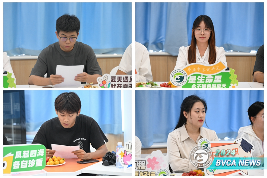 同学们回顾了在农职的学习生活,细述成长与感悟,围绕实践学习、技能大赛、学生活动、食堂服务等诸多方面积极建言献策,对老师的辛勤培养和付出表示衷心感谢,对学校未来发展表示诚挚祝愿,立志在人生新的征程上,坚定信仰、扎实工作,不辜负学校的殷切期望,在强国建设中展现青春作为。相关职能部门负责人结合部门工作,为毕业生送上了殷切嘱托和诚挚祝福。