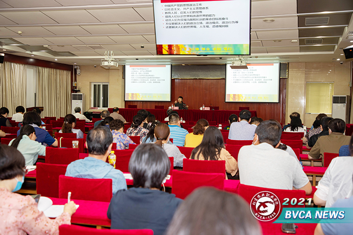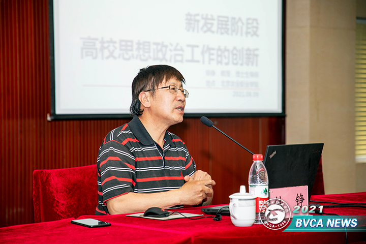 6月9日下午,学院召开思想政治工作报告会。北京林业大学博士生导师,北京高校新闻与文化传播研究会常务副理事长铁铮教授做了题为“新发展阶段高校思想政治工作创新”的讲座。各党总支书记、直属党支部书记、党支部书记、思政课教师、辅导员,以及党政办、纪委(监察专员办公室)、组织部、宣传部、工会、团委、离退休管理处、学生工作部、安全稳定工作处等全体工作人员参加。党委副书记冯学会主持报告会。