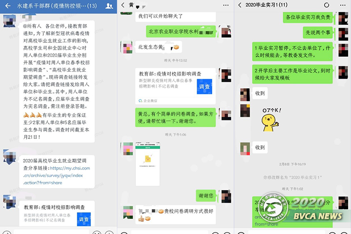 针对5个毕业班,严格执行学院“暂停毕业实习”的要求,安排实习指导教师分别与指导学生之间开展一对一沟通,实时掌握学生每日情况,确保每名学生人身安全。积极协调合作单位用人需求,向招聘企业解释说明北京市教委及学院关于毕业实习环节政策的相关要求,最大程度上取得企业的理解和支持。