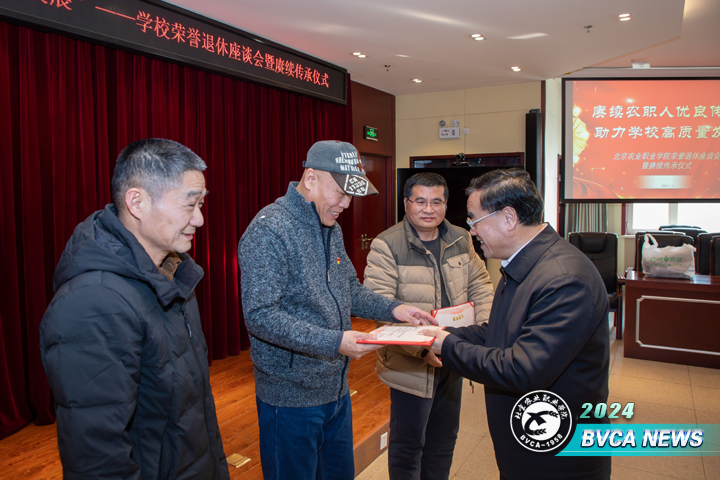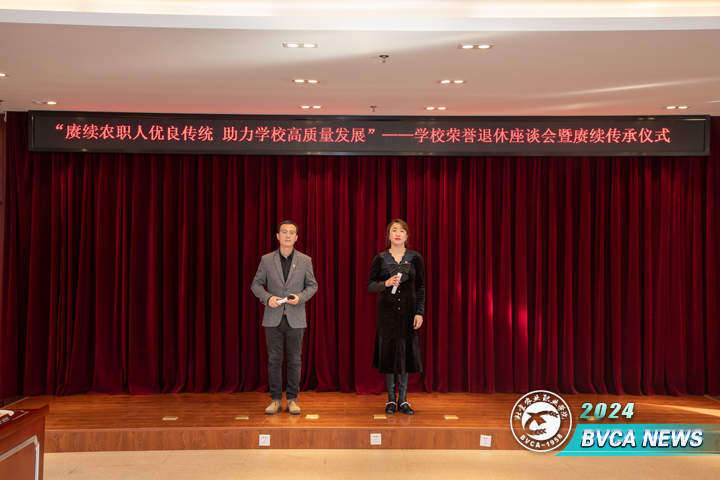1 月 11 日下午,best365英国在线体育官网举办了一场温馨而隆重的退休教职工荣誉退休座谈会暨赓续传承仪式。学校党委书记周志成,党委副书记、院长范双喜,北京市职业技术教育学会会长、原北京市人大常委会农业农村委员会副主任、best365英国在线体育官网院长王福海,党委常委、副院长李俊英以及相关部门负责人与退休教职工代表、在职教职工及学生代表齐聚一堂,畅叙今昔,共话学校发展。座谈会由党委常委、副院长杨博主持。