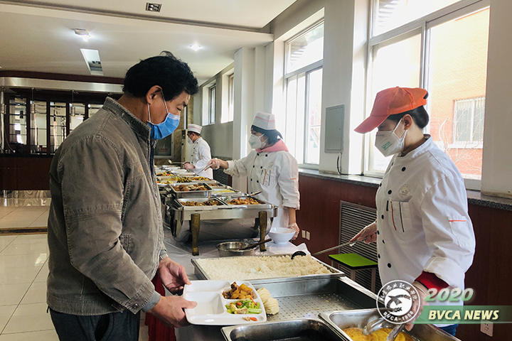 食堂职工严格进行体温测量,佩戴口罩,确保食品卫生安全