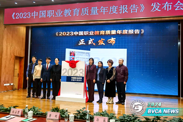 教育部职业教育与成人教育司职业院校发展处处长任占营、中国教育科学研究院副院长于发友、全国高等职业学校校长联席会议主席董刚、高等教育出版社副总编辑阳化冰出席发布会并为《2023中国职业教育质量年度报告》发布揭幕。