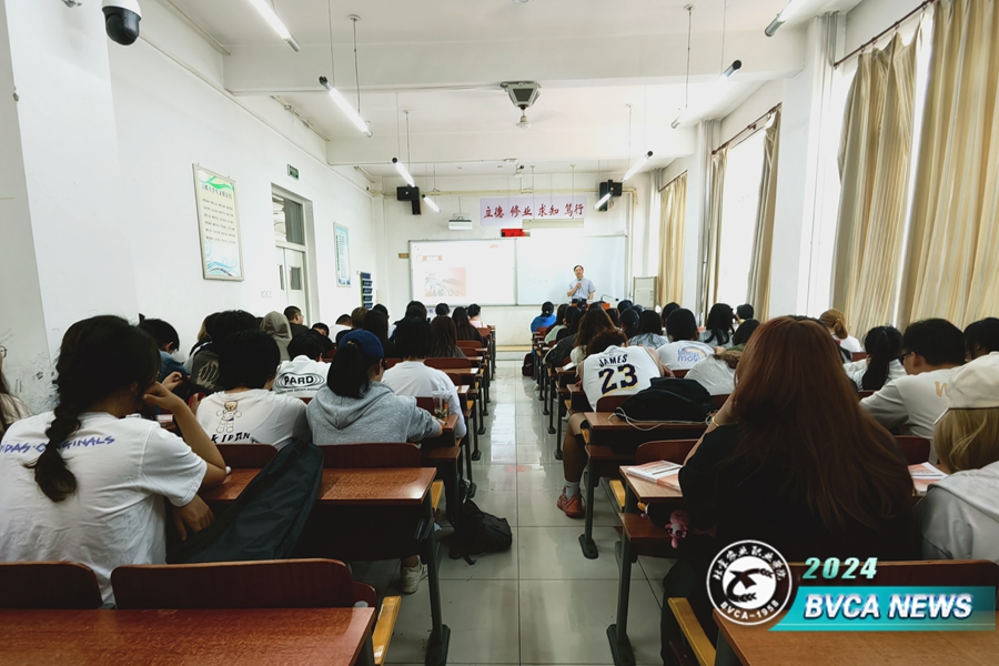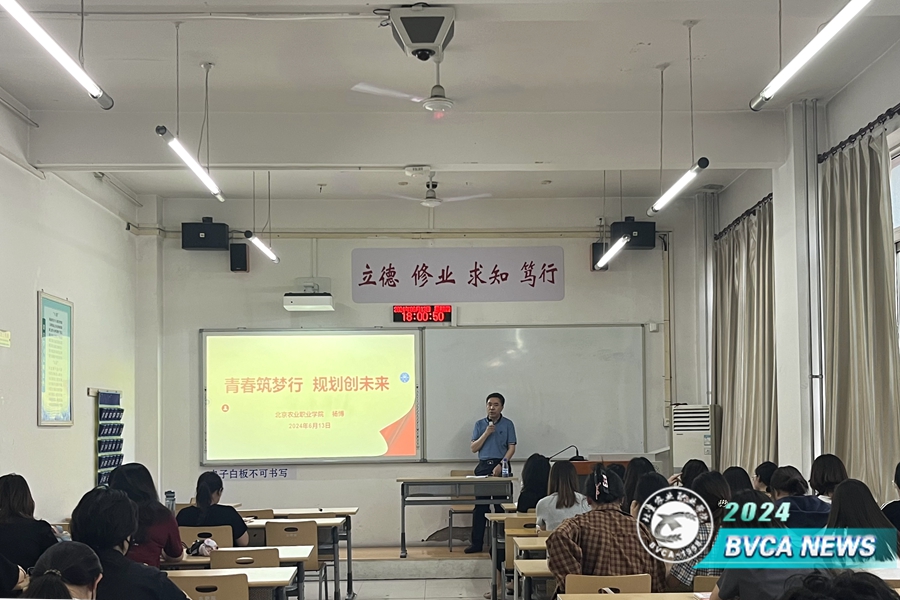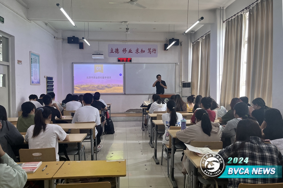 6月6日,副院长程文华以“聚焦乡村振兴  赋能服务京郊”为主题为动物科技学院牧医2312和2313班学生讲授思政课。他系统梳理了北京农业农村基本情况,并向同学们详细介绍了学校近年乡村振兴工作情况以及在首都乡村振兴工作中做出的突出贡献,使学生更加坚定了专业自信和职业自信。