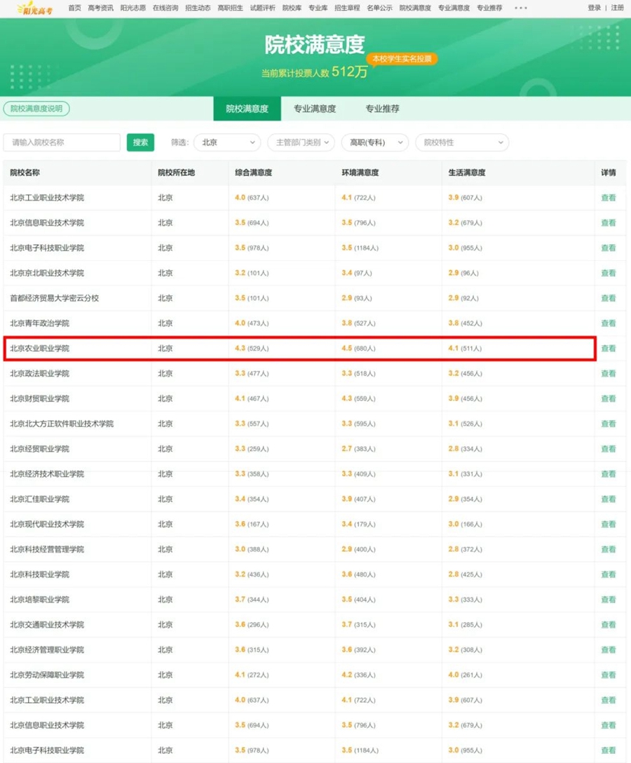 教育部“阳光高考”信息平台今年继续开展“院校满意度”评价,best365在全市高职(专科)范围内综合满意度、环境满意度、生活满意度三项均为全市第一。