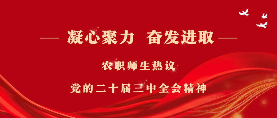 农职师生高度关注全会召开,第一时间通过各种渠道学习全会精神。大家一致表示,要更加紧密地团结在以习近平同志为核心的党中央周围,坚持以习近平新时代中国特色社会主义思想为指导,认真学习贯彻党的二十届三中全会精神,凝心聚力、奋发进取,为进一步全面深化改革、推进中国式现代化贡献农职力量。