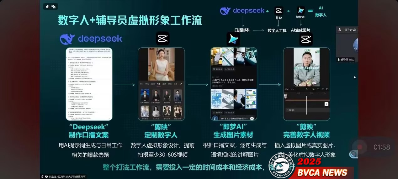 园艺园林学院冯梦珂老师表示,本期AI融合辅导员沙龙(第二期)依旧干货满满,老师们对DeepSeek、豆包、纳米AI等工具的拆解讲授、应用场景和实操指南等系列技术分享又一次点燃了我的学习激情,让我深刻体会到AI浪潮已全方位融入日常工作与生活,需要我们接受挑战,顺势而为。