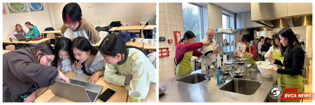 在朗蒂斯集团实训基地,中荷学生结对参与鸡肉解剖与烹饪课程。课程以问题为导向,引导学生通过触摸、嗅觉、视觉与思考,辨别玉米饲养鸡与有机走地鸡的差异,并协作完成鸡肉分割、烹饪与成果品鉴。同学们在实践中深化了对食品科学的理解,也增进了跨文化友谊。