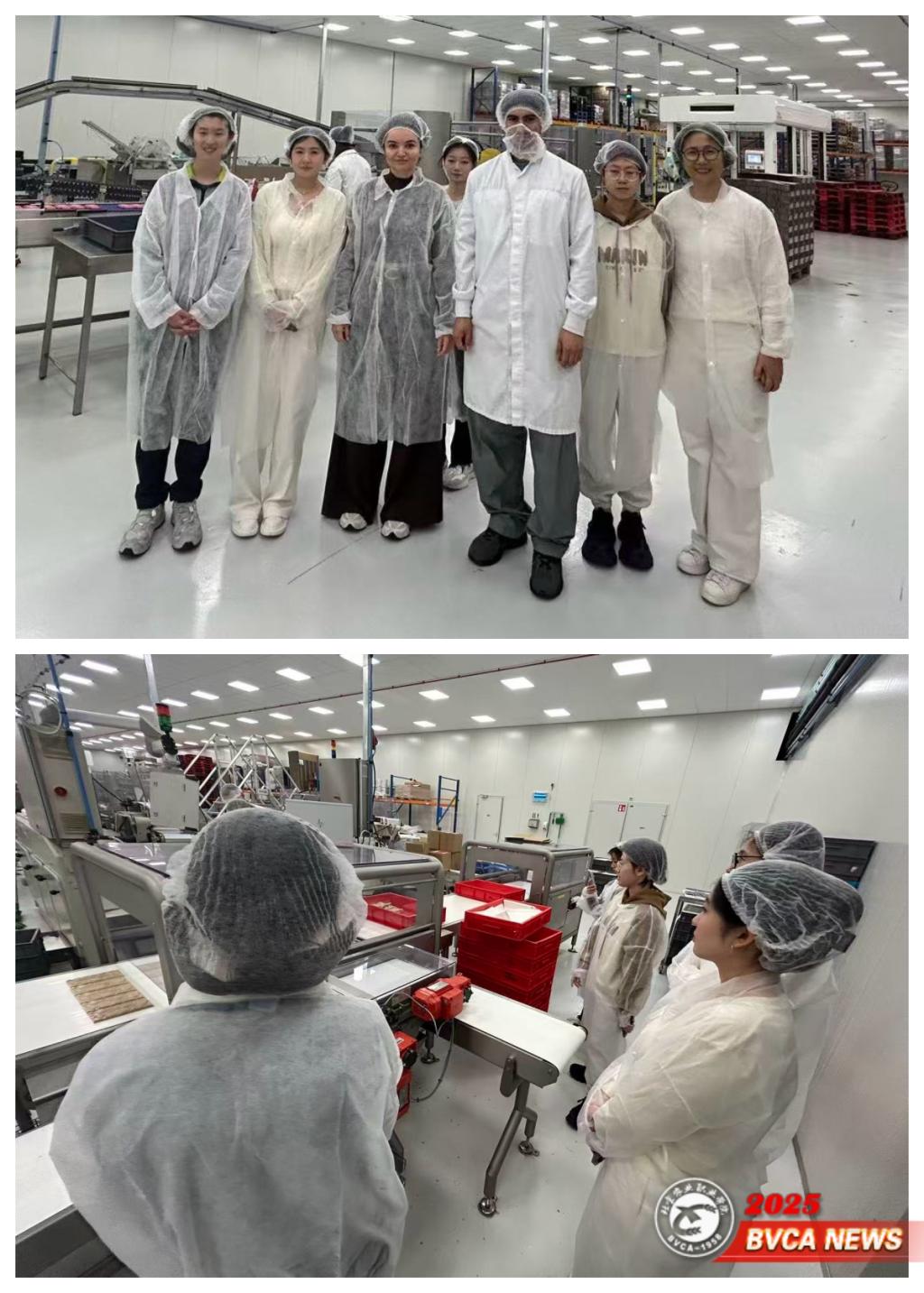 代表团还参观了生命学院大三学生实习所在的巧克力工厂,深入考察了可做2000多种配方的巧克力生产线,包括原料储存、配料、粉碎研磨以及注模、冷却、脱模、包装、喷码、装箱等全自动化流程。同学们对巧克力生产的全程质量控制与行业前沿技术有了更直观的认识。