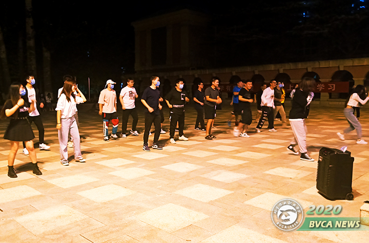 辅导员丁会娟老师带领学生会干部和各社团负责人积极开动脑筋,在充分考虑防疫要求的前提下,结合北校区现有场所和条件,设计了多个活动方案,并不断优化,最终确定通过系学生会文艺部和系礼仪文化社联合组织开展“校园广场舞”和“唱歌给你听”等活动。在制度活动方案过程中,充分考虑限制人数、保持安全距离等防疫要求以及学生晚上时间的其他学习生活以及周边学院家属院区休息情况等,每次活动控制在一小时内,周一至周四交替进行,保证校园良好秩序。