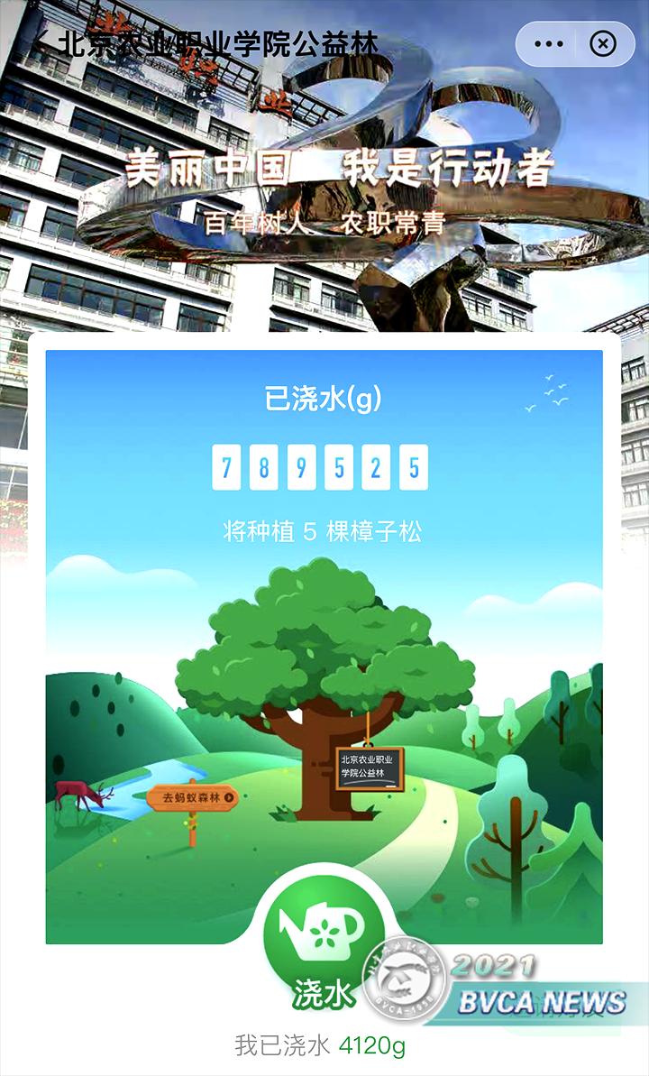 2020年初,为响应北京市人民政府办公厅关于印发《北京市蓝天保卫战2018年行动计划》通知要求,传承共青团自上世纪50年代以来积极发动青少年植树造林活动的历史,进一步动员全院青年学生积极参与生态文明建设,让广大青年学生自觉践行绿色生产和生活方式,院团委组织全院学生参与共青团北京市委员会大学中专工作部、北京市学生联合会秘书处与北京市环境保护宣传中心动员首都高校开展共建“青春北京”公益林活动。此次公益活动依靠蚂蚁金服集团“蚂蚁森林”线上平台,共建“青春北京”公益林,推动“蓝天保卫战,我是行动者”活动落地,为生态文明建设贡献青年力量。