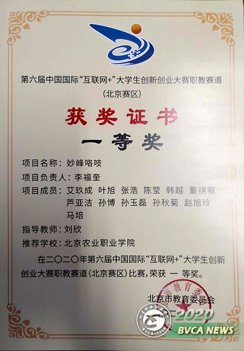 该项目经过学院初选,被推荐参加第六届中国国际“互联网+”大学生创新创业大赛北京赛区的比赛。经北京赛区职教赛道初赛进入决赛,9月8日路演决赛冲入18强,9月9日再次路演进行18强排位赛,取得了北京赛区职教赛道第6名的好成绩,荣获北京市教委颁发的一等奖证书。