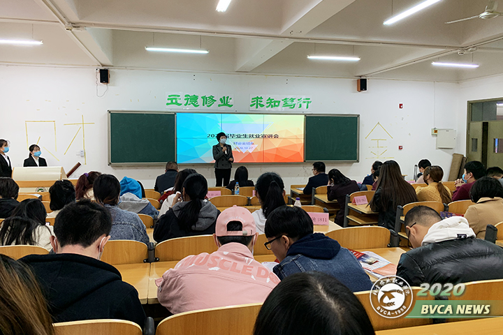 在宣讲现场,财金系党总支书记李艳芳首先从就业形势、岗位选择,从业面试技巧经验以及宣讲单位的岗位方向等方面做了动员。深圳市汇合发展有限公司、中信银行、北京通友时代科技有限公司、北京长河社会工作促进中心的四位负责人根据公司的用人情况,从公司概况、招聘岗位、薪资待遇、上升空间等依次进行了招聘宣讲。