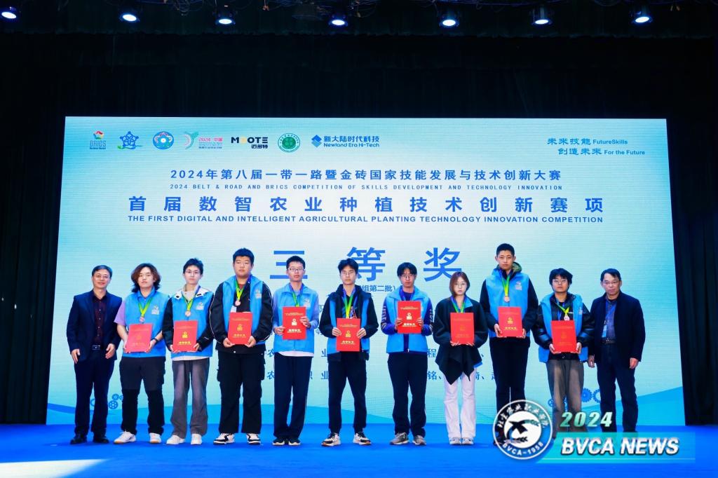 数智农业种植技术创新赛项中指导教师刘雁征、徐贺腾带领姜博、赵宏、周悦团队荣获高职组三等奖;指导教师陈科、宋一明带领徐楷轶、杨皓程、姜皓宇团队荣获中职组三等奖。